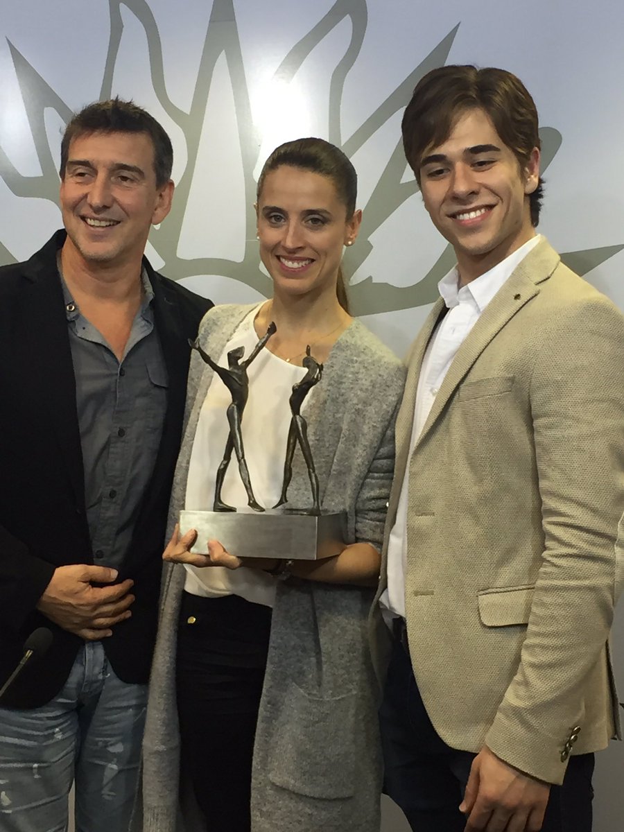 María Noel Riccetto, Julio Bocca y Gustavo Carvalho posan con el premio más importante del ballet